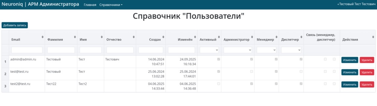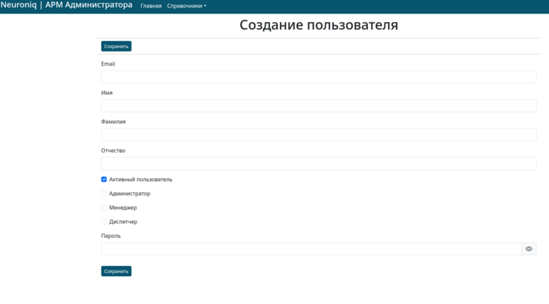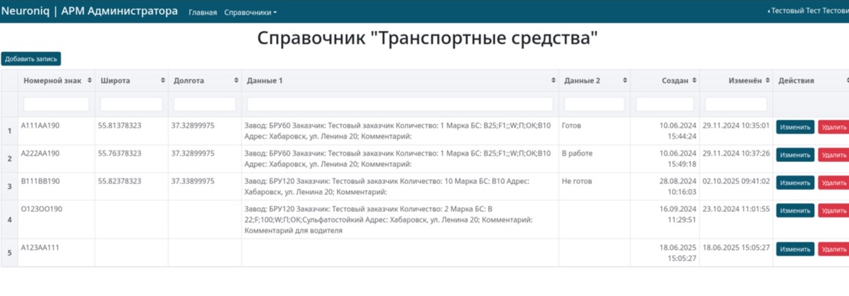 - Интерфейс администратора – дает возможность управлять справочниками пользователей и транспортных средств, осуществлять мониторинг процесса загрузки, смотреть историю и создавать отчеты.